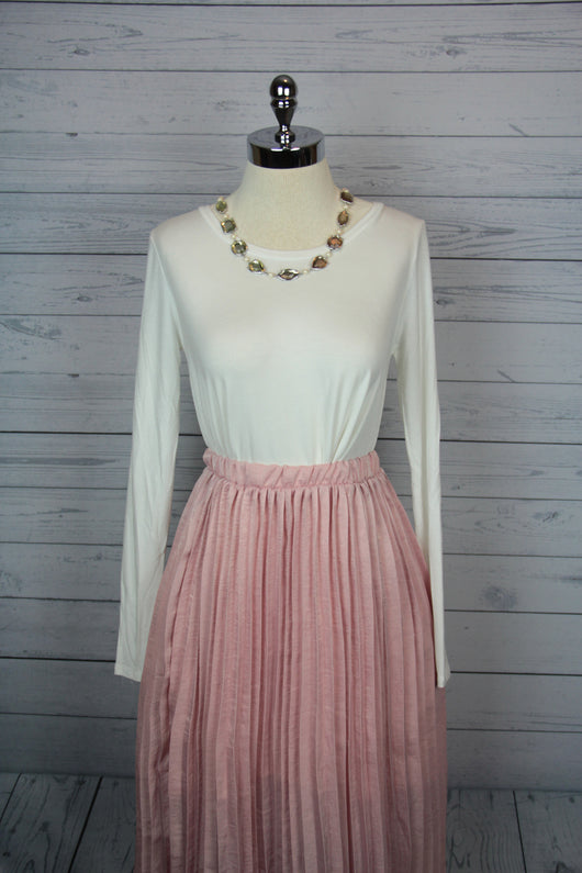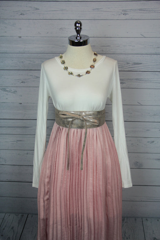 Blush Monroe shown with white Kokomo Tunic and Champagne CINCH belt.